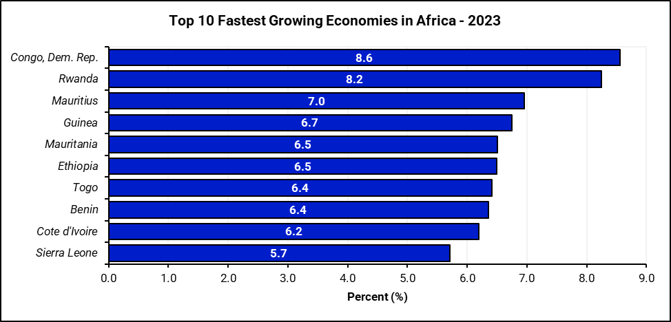 According to 2023 GDP growth figures, Rwanda ranks second among the fastest-growing countries in Africa and is likely to be even better with the current growth of 8.9% for 2024[2]MINECOFIN. 2024. Rwanda Registers 8.9% Growth, Confident in Economic Outlook. https://www.minecofin.gov.rw/news-detail/rwanda-registers-89-growth-confident-in-economic-outlook.